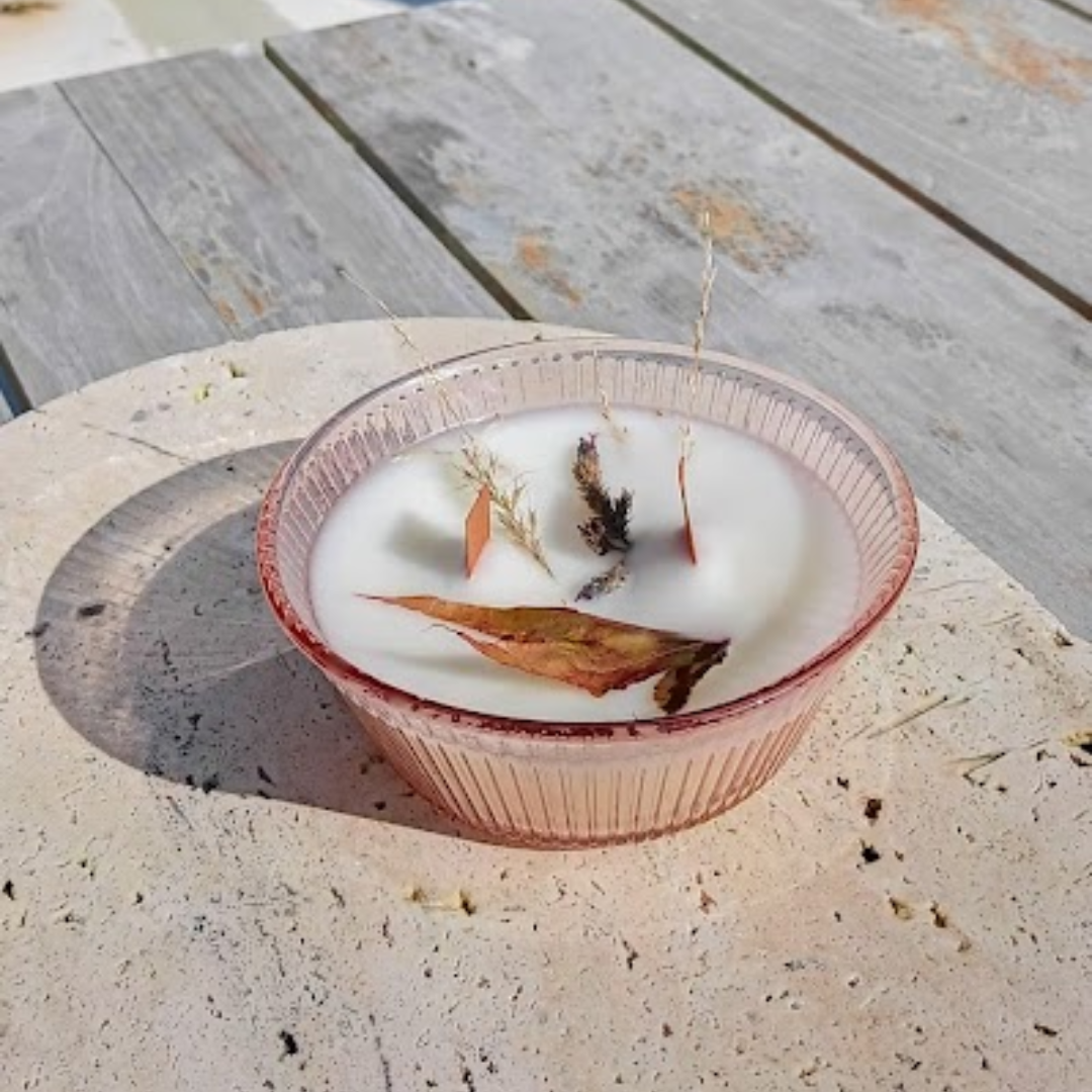 Un abrazo de ternura y gratitud hecho vela: Lazos de Luz, una pieza en envase de cristal color rosado cálido, acogedora y radiante, que transmite cercanía y unión en cualquier rincón.